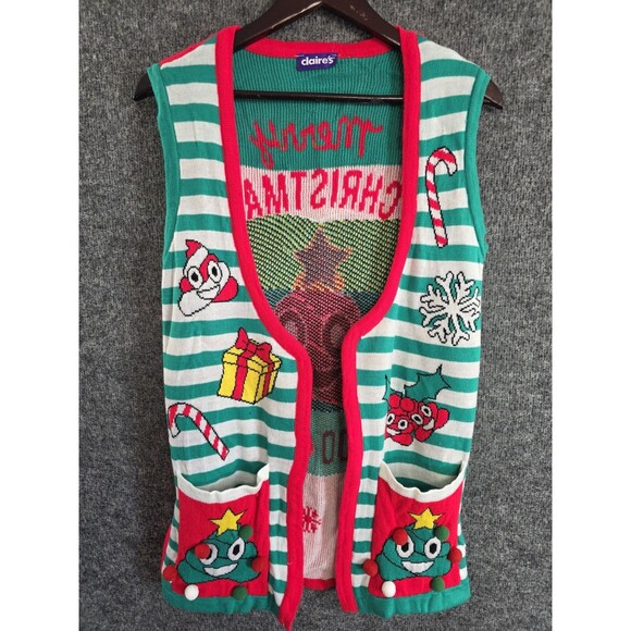 Claires Women's Ugly Sweater Vest One Size Light Up Merry Christmas Poo You