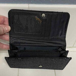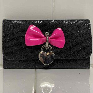 Claire's black sequin wallet with pink bow and heart in like new condition