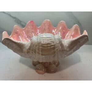 Clam Conch Seashell Vintage Pink Glaze Planter Centerpiece Bowl Birdbath