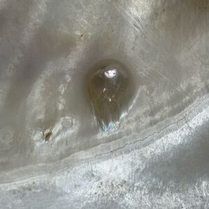 This item is a unique and collectible item that features a clam oyster shell with blister pearls attached. This product is a special piece that combines the beauty of the shell with the iridescent quality of the pearls, making it a desirable item for collectors of rocks, fossils, and minerals. The natural beauty and rarity of this item make it a valuable addition to any collection of shells or unique decorative pieces.