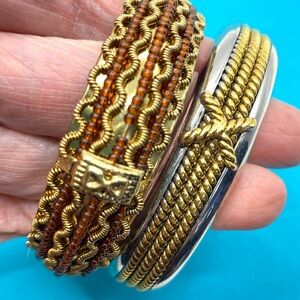 Clamper Hinged Bracelet Bangles Pair Textured Silver & Gold