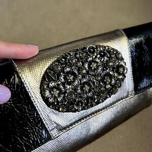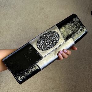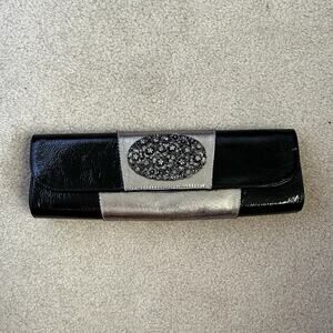 Clara Kasavina Vintage Handmade Black Silver Evening Long Clutch Handbag