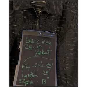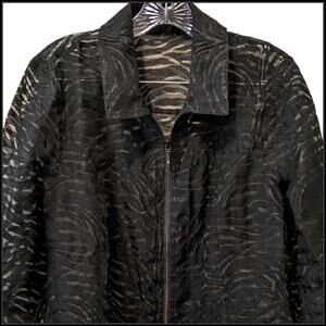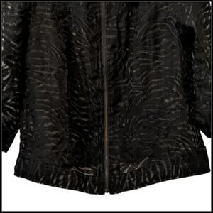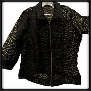 Clara S Black Sheer Mesh Textured Zip Up Shirt Jacket Zebra AOP Women's XL