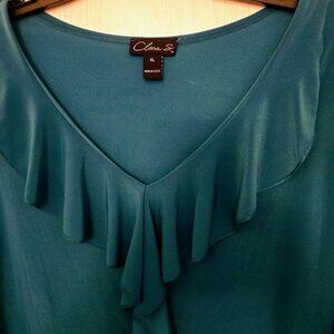 Clara S cerulean teal 3/4 ruffle top tunic Size XL NWOT