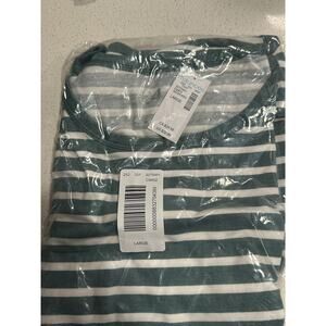 Maurices Olive White Clara Striped T-Shirt Women's L Short Sleeve Round Neck NWT