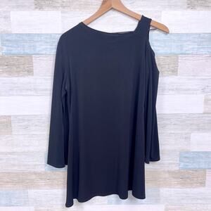 Clara Sun Woo Asymmetric Cold Shoulder Longline Blouse Black Womens Small