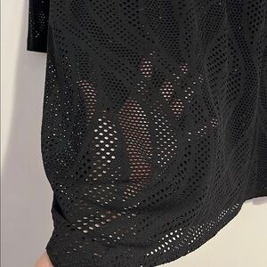 Piece is entirely covered in small circle cutouts creating a lace-like see-through effect