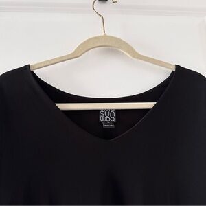 Clara Sun Woo Black V-Neck Stretch Knit Ladder Sleeve Dress Women’s Size Medium