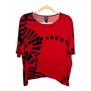 Clara Sun Woo Blouse Women's Size Small Abstract Office oversized black red
