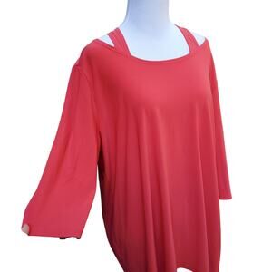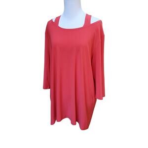 Clara Sun Woo Coral Pink Cold Shoulder Top 3/4 Sleeve Sz 1X