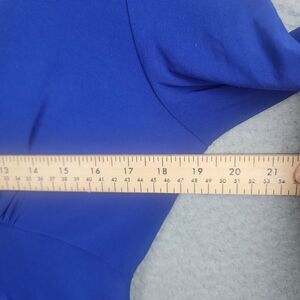 This Clara Sun Woo stretch knit dress in classic royal blue is a timeless wardrobe essential! The faux wrap v-neckline and wide waistband create a flattering, feminine silhouette, while the 3/4 sleeves and wrinkle-resistant fabric make it perfect for work days or quick weekend getaways. Effortless to style up or down—pair with boots or heels for easy elegance. Excellent condition, no flaws noted.
