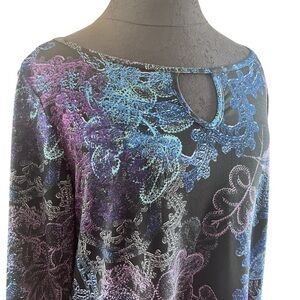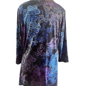 Clara Sun Woo Floral Patterned Jersey Tunic Top Black, Blue, Purple Size Medium
