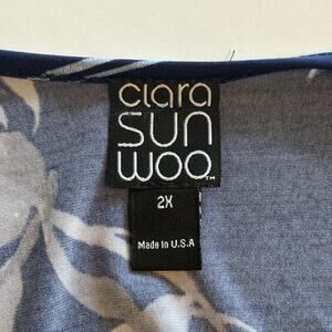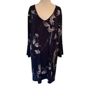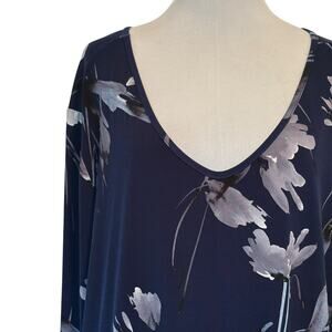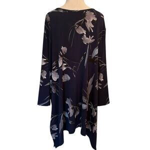 Clara Sun Woo Floral Tunic Womens Size 2X Navy V-Neck Long Sleeve Lagenlook Top