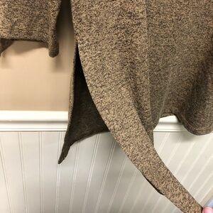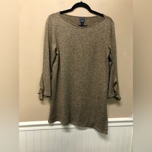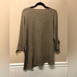 Clara Sun Woo Heathered Brown Knit Asymmetrical Split Side Blouse Ruffle Sleeve