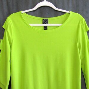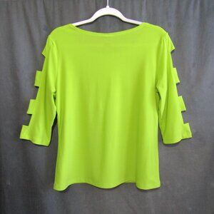 Clara Sun Woo Neon Yellow Top Size M Stretch Knit Cutout 3/4 Sleeve Pullover