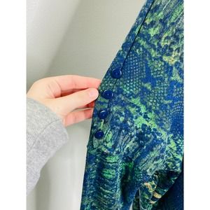 Clara Sun Woo Oversized Snake Print Soft Lightweight Sweater/Knit Long Sleeve Dolman Top with a Boat Neckline and Button Detail at The Shoulders Womens Size XS Boxy Maximalist Casual Chic Business Casual