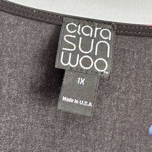 Clara Sun Woo Paint Stroke Tunic Top 1X Plus Asymmetric Hem Long Sleeve Art Knit