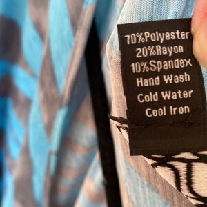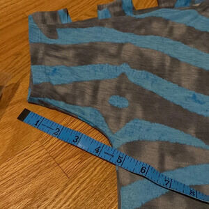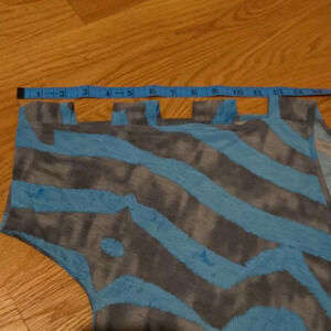 Blue and gray pattern printed top with v neck and shoulder cutouts. No flaws but is preowned.