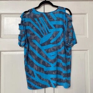 Clara Sun Woo Printed Blue Gray Cold Shoulder Open Cutout Shoulders Blouse Zebra