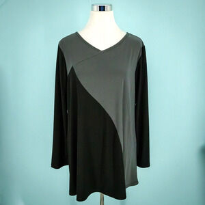 Clara Sun Woo Size Large L Black Gray Color Block V Neck Long Sleeve Tunic Top