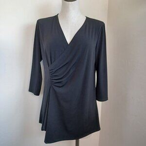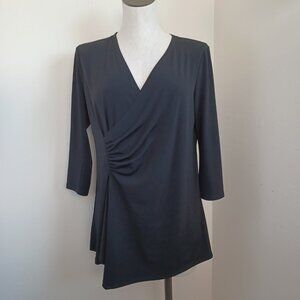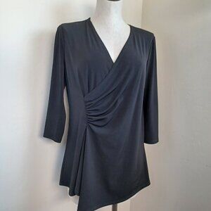 Clara Sun Woo Top Black Side Gathered Drape Stretch Knit Tunic Womens Medium