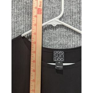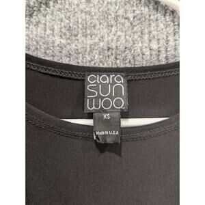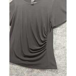 Clara Sun Woo Women's Black Side Ruched Blouse Stretch Short Sleeve Size XS