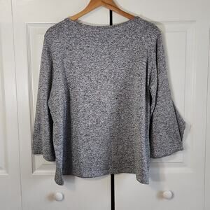 Clara Sun Woo Women's Heathered Gray Sweater Size LG Ruffle Sleeve Neutral USA