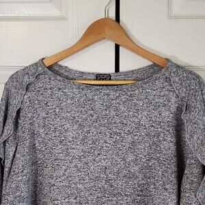 Clara Sun Woo Women's Heathered Gray Sweater Size LG Ruffle Sleeve Neutral USA