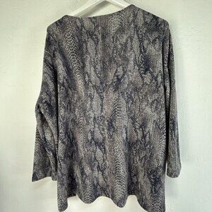 Clara Sun Woo Womens Python Snake Print Sweater Top Large Gray Stretch Pullover