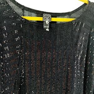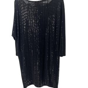 Clara Sun Woo black sequined long sleeve shift dress Sz M