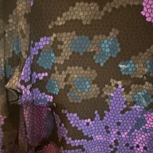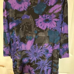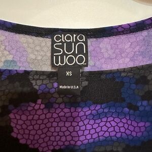Clara Sun Woo top in perfect condition. Size XS-S it has purple, black and dark teal colors. It is made of 70% polyester, 20% rayon and 10% spandex. Beautiful top, I wore it with leggings.