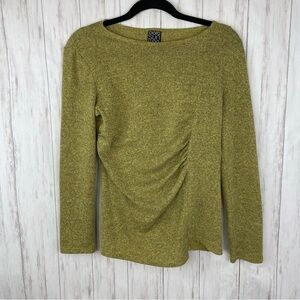 Clara Sun Woo yellow lime sweater size small. Super soft and warm! Ruched asymmetrical detailing. Gently preloved in great condition.