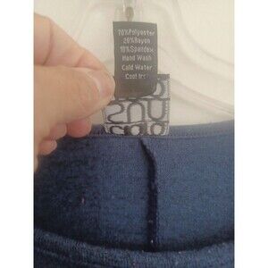The Clara SunWoo blue knit tunic in size L is a stylish and versatile piece perfect for various occasions. This oversized tunic features a round neckline, pullover closure, and 3/4 sleeves. The tunic is made from a comfortable knit fabric with polyester, spandex, and rayon for stretch and breathability. The minimalist design with button accents at the shoulders and an asymmetrical hem adds a touch of uniqueness. Perfect for all seasons, this tunic is a must-have for those looking for a relaxed fit and a touch of bohemian style.