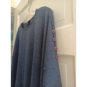 Clara SunWoo blue knit tunic L button accent oversized asymetric minimalist