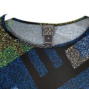 Clara Sun Woo geometric splash print boxy top blouse Size XS black blue