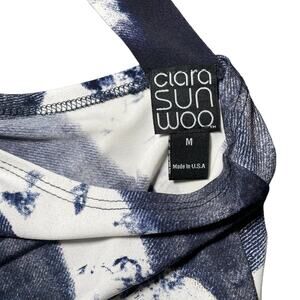 Clara Sunwoo Abstract Print Top Back Cut Out Navy Blue White - Size Medium