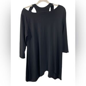 Clara Sunwoo Black Cut Out Asymmetric 3/4 Sleeve Tunic Top Size Large in great condition