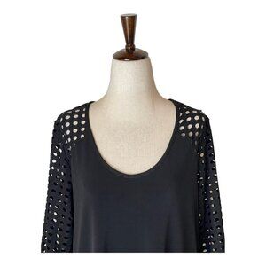 Clara Sunwoo Black Liquid Jersey Laser Cutout Detail Hi Lo Tunic Top Size S