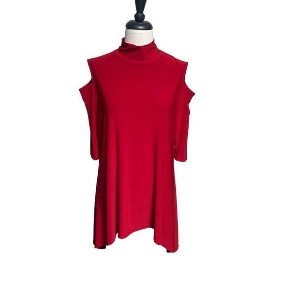 Clara Sunwoo Cold Shoulder Asymmetrical Turtleneck Red Tunic Small
