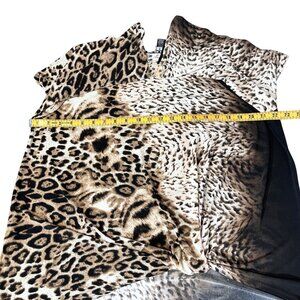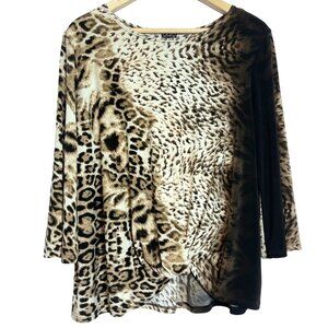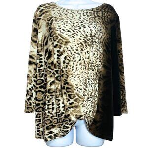 Clara Sunwoo Mixed Animal Print Top Size L Black Knotted Stretch Knit Blouse