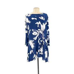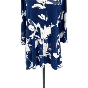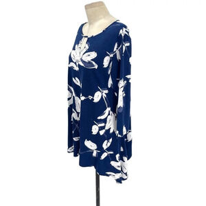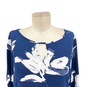 Clara Sunwoo Navy Blue White Floral Keyhole Tunic Top Size Large