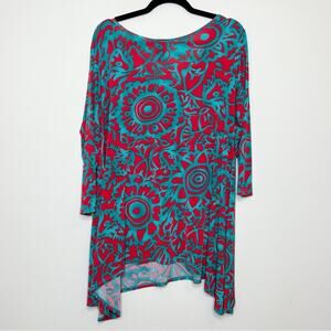 Clara Sunwoo Patterned Tunic Top Turquoise Red Size XL