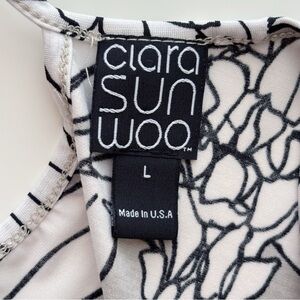 Clara Sunwoo Sleeveless Floral Tunic Top Large Tan White Black