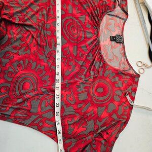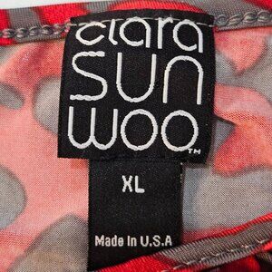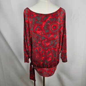 Clara Sunwoo Top XL Red & Gray Abstract Print, Side Tie Maximalism