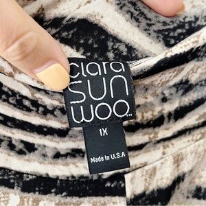 Clara Sunwoo Wide-Leg Palazzo Pants in ivory/brown/black zebra animal print. Plus Size 1X. Highrise. Stretchy. Pre-owned, excellent condition.