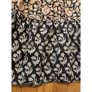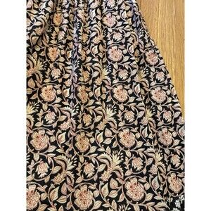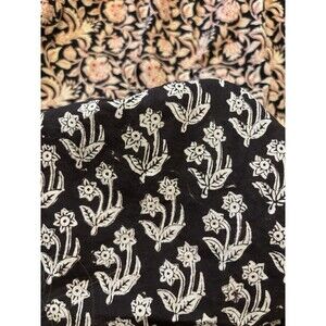 Gently used condition. No major flaws. There are a few light marks on some of the black areas of fabric at the sleeves at bottom hem, but I think this is a natural variation of the print/pattern rather than staining