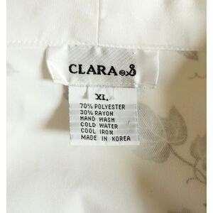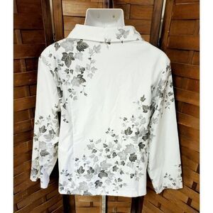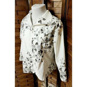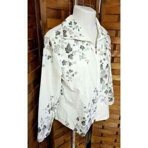Clara S. Size XL Long Sleeve Zip Wide Collar Jacket White Black Leaf Design
