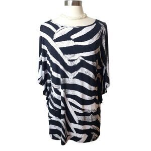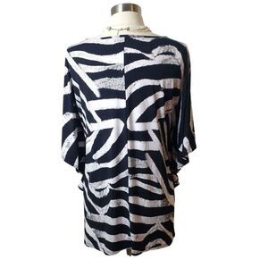 zebra print top, batwing sleeve, women's fashion, XL top, bold design, black and white top, casual chic, statement piece, comfortable fit, stylish blouse, relaxed fit, unique pattern, lightweight fabric