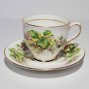 Clare Teacup and Saucer Pink Flowers Leaves Vintage