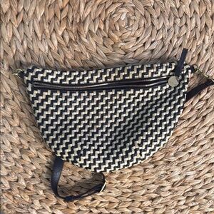 Stylish crossbody bag with a woven pattern. Features a sleek black strap. Perfect for everyday use.